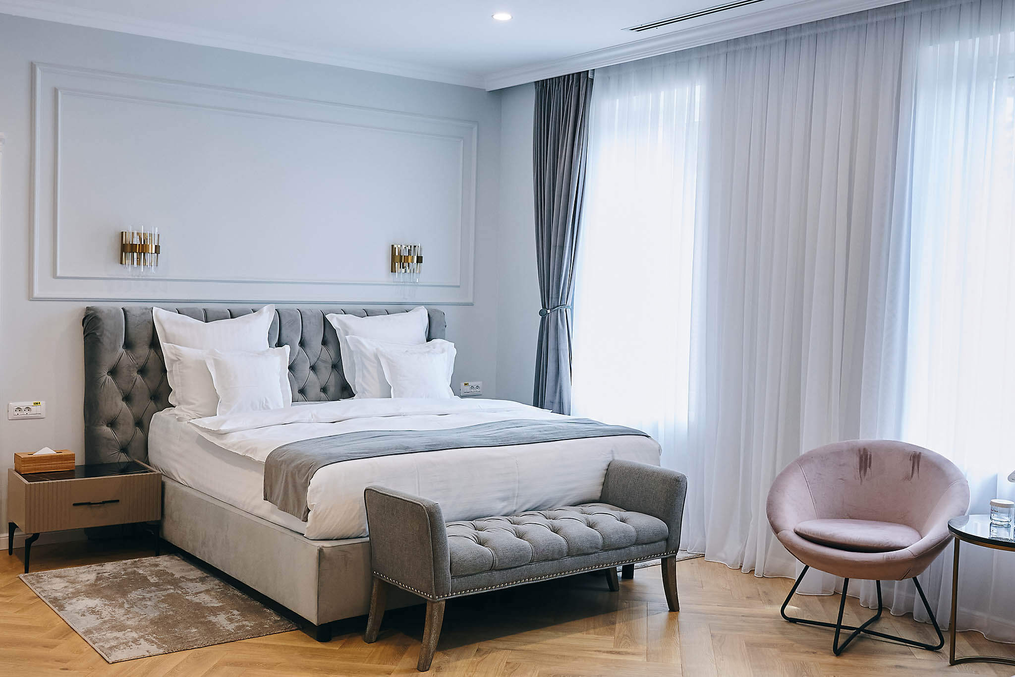 Cele 46 de camere impresionează prin spațiu generos, design contemporan și atenție deosebită la detalii, fiecare fiind amenajată cu finisaje și mobilier de înaltă calitate, pentru confort deplin. Atmosfera rafinată este completată prin dotări esențiale pentru un sejur la standarde 4*: baie proprie, aer condiționat, conexiune internet Wi-Fi de mare viteză, televiziune prin cablu, minibar și espressor (ceai și cafea).